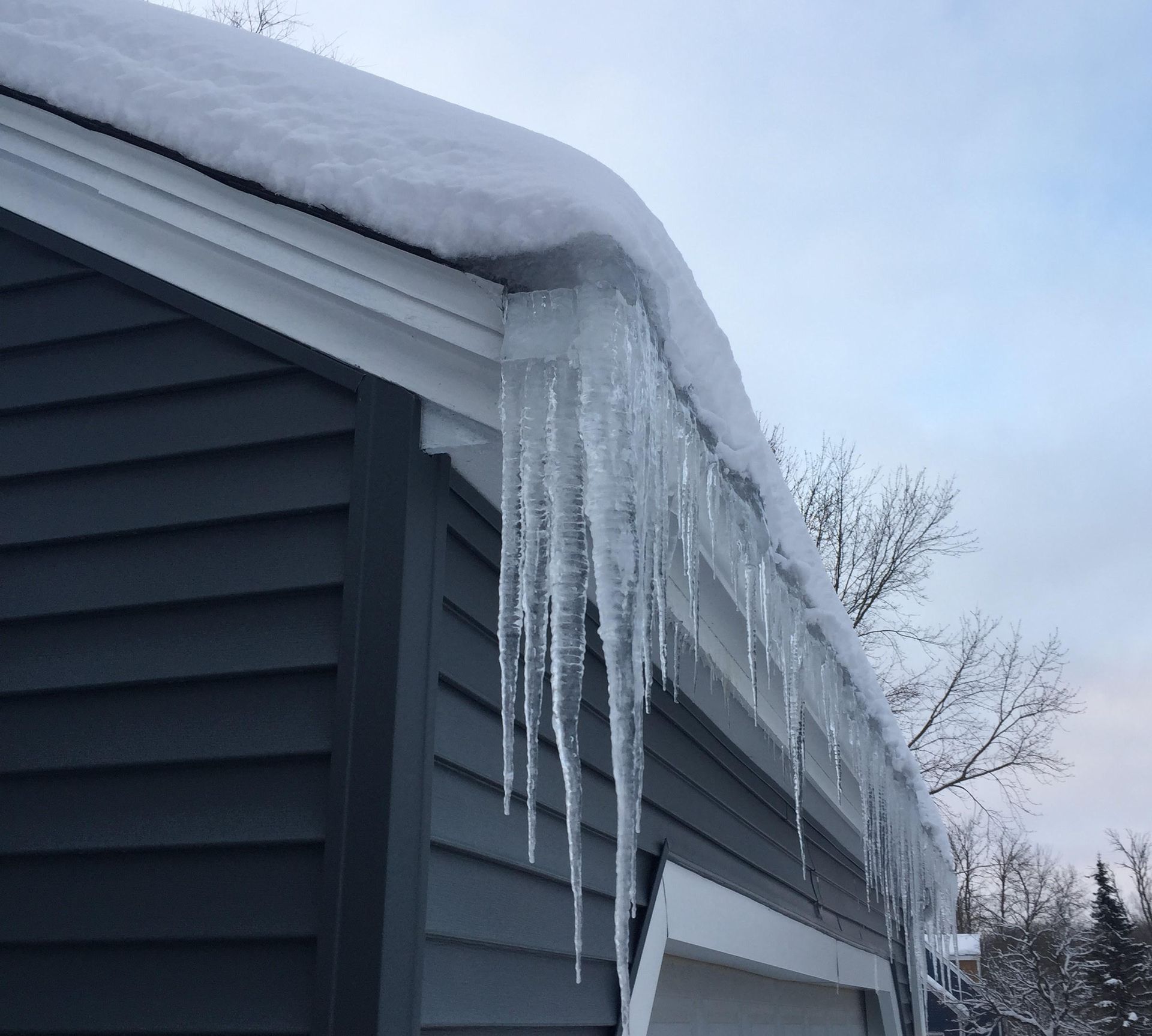 Icicles are an indication of an ice dam. Roof ice can cause permanent damage to your house., CAB Construction Co is an Ice Dam Removal specialist utilizing wet steam with low pressure..